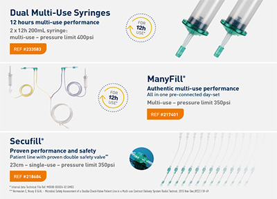 12시간 사용 (Multi-use) 제품은 매 환자마다 주사기와 튜브를 교체할 필요가 없습니다.(Secufill(급여) 제품만 1환자당 1개씩 사용)