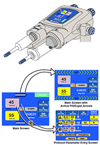 Flow Rate: 0.1 – 10 mL/s / Volume: 0.1 to volume in Syringe (200ml)
